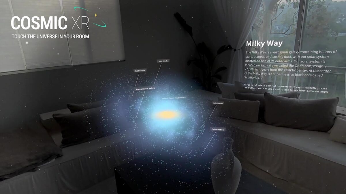 Enter Cosmic XR, which picks up where those early apps left off. Building on the legacy, it uses modern graphics and VR features like passthrough and hand tracking to present the solar system, the Milky Way, the Andromeda Galaxy, and even the black hole Sagittarius A.