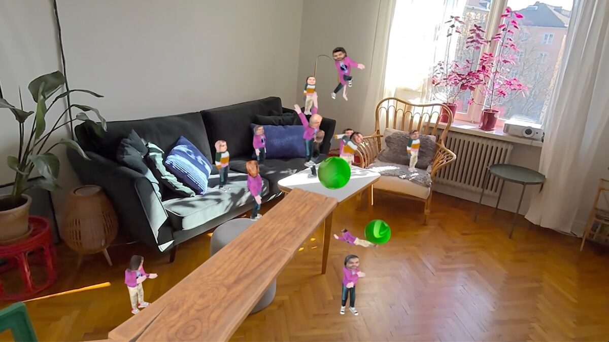 I quickly tried the experience. It starts with a cardboard box that unfolds to reveal 20 mini-humans that follow you everywhere. You can pick up the minions and throw them around the apartment, put up wooden barriers and other obstacles, let them float around the room, or hit them with baseball bats and hammers.